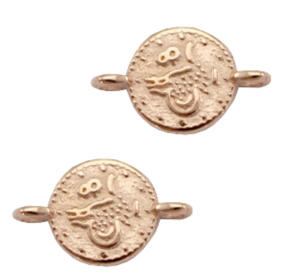 DQ ( designer quality) muntje tussenstuk met 2 ogen. 12x7 mm. Rijggat van 1,2 mm.