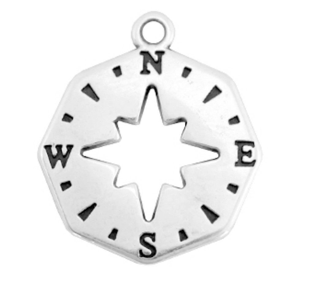 DQ metaal hanger kompas zilver 25x22mm.
