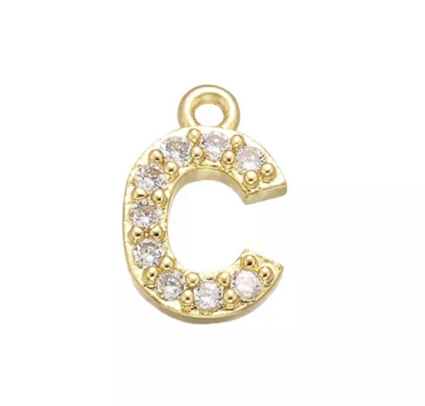 Bedel zirkonia goud letter C. Nikkelvrij