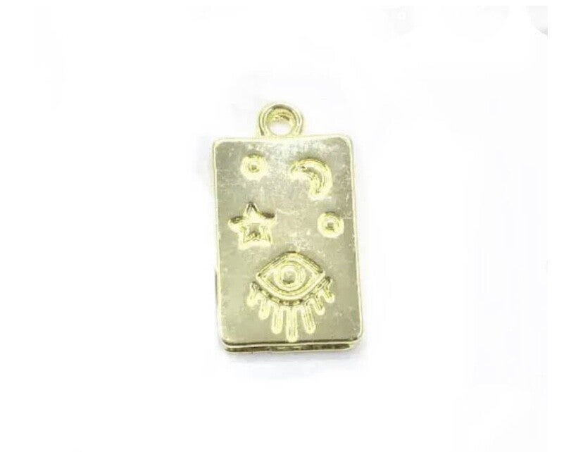 Bedel / Tag eye & stars goud. 10x15mm. Nikkelvrij.