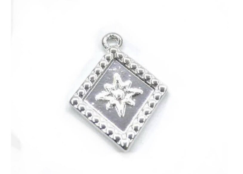 Bedel metaal hanger ruiten star zilver. Nikkelvrij.